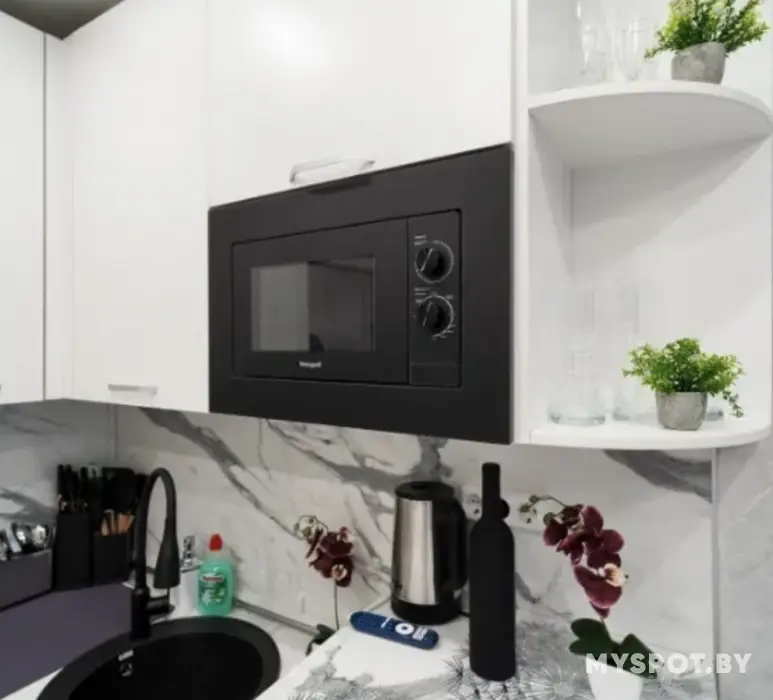 Телевизор со Smart TV, КОНДИЦИОНЕР, высокоскоростной бесплатный Wi-Fi, Фен, пылесос, встроенная СВЧ, ТОСТЕР, стиральная машина, душевая кабина, эл. полотенцесушитель, утюг, эл. чайник, варочная панель, встроенный холодильник, набор кухонной посуды + бокалы, фужеры, стаканы. Гель и ополаскиватель для стирки, средства гигиены. Халаты + тапочки (по запросу, доп. оплата).