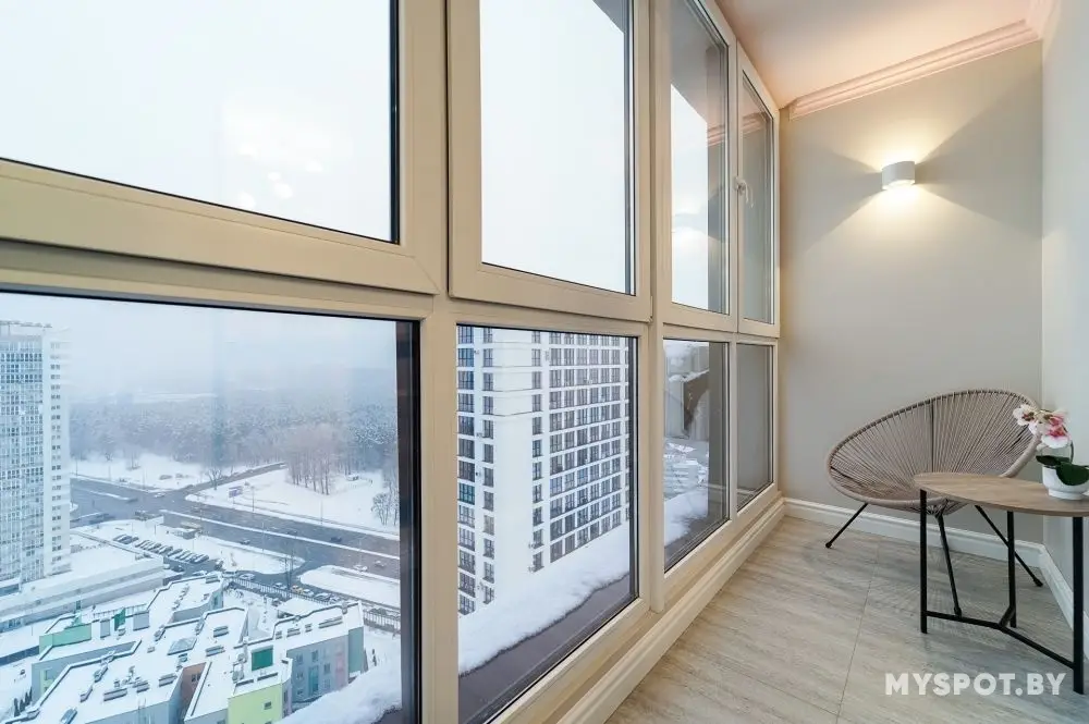 Расположена на 23 этаже с головокружительным видом на Слепянское водохранилище.Квартира состоит из двух изолированных спальных комнат и кухни-гостинной. По периметру всей квартиры французские окна в пол с прекрасными видами на город.