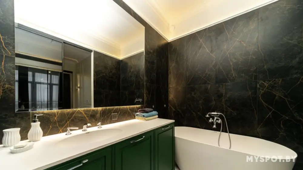 С квартире есть каменная ванная и душевая.
